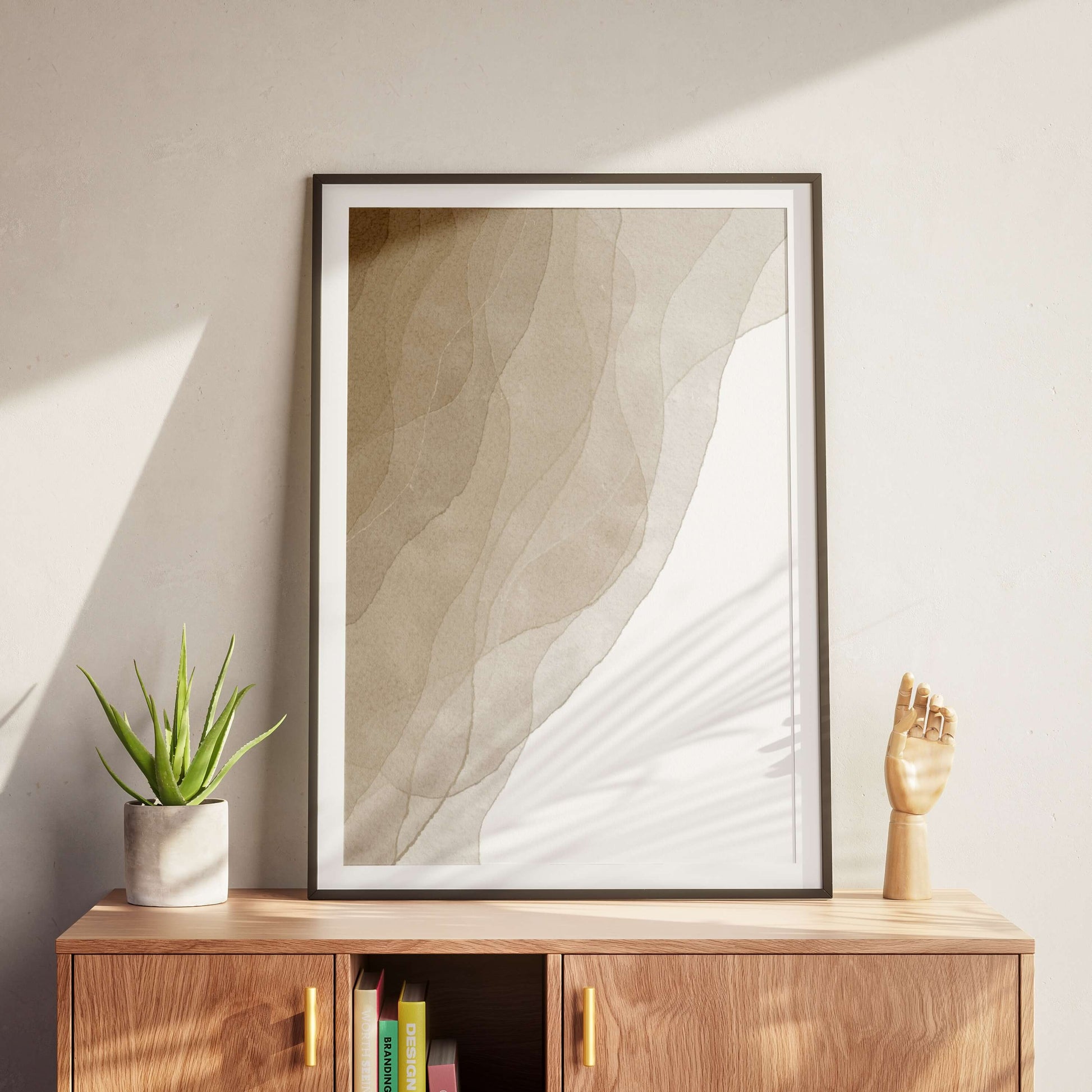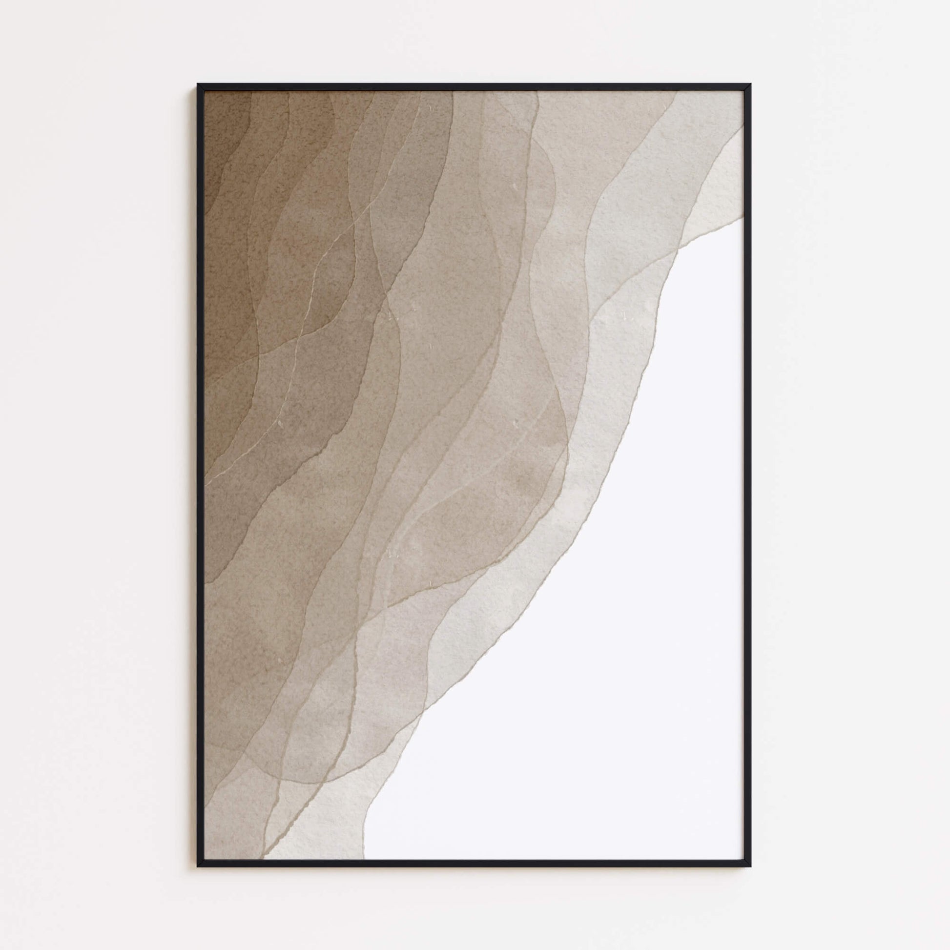 Dieses abstrakte, druckbare Poster zeigt weiche, geschichtete Kurven in warmen Beige- und Brauntönen, die an natürliche Sandsteinformationen erinnern. Das minimalistische Design verleiht modernen oder unkonventionellen Interieurs Wärme und Eleganz. Perfekt als Einzelstück oder in Kombination mit anderen neutralen Drucken für eine stimmige Bilderwand.