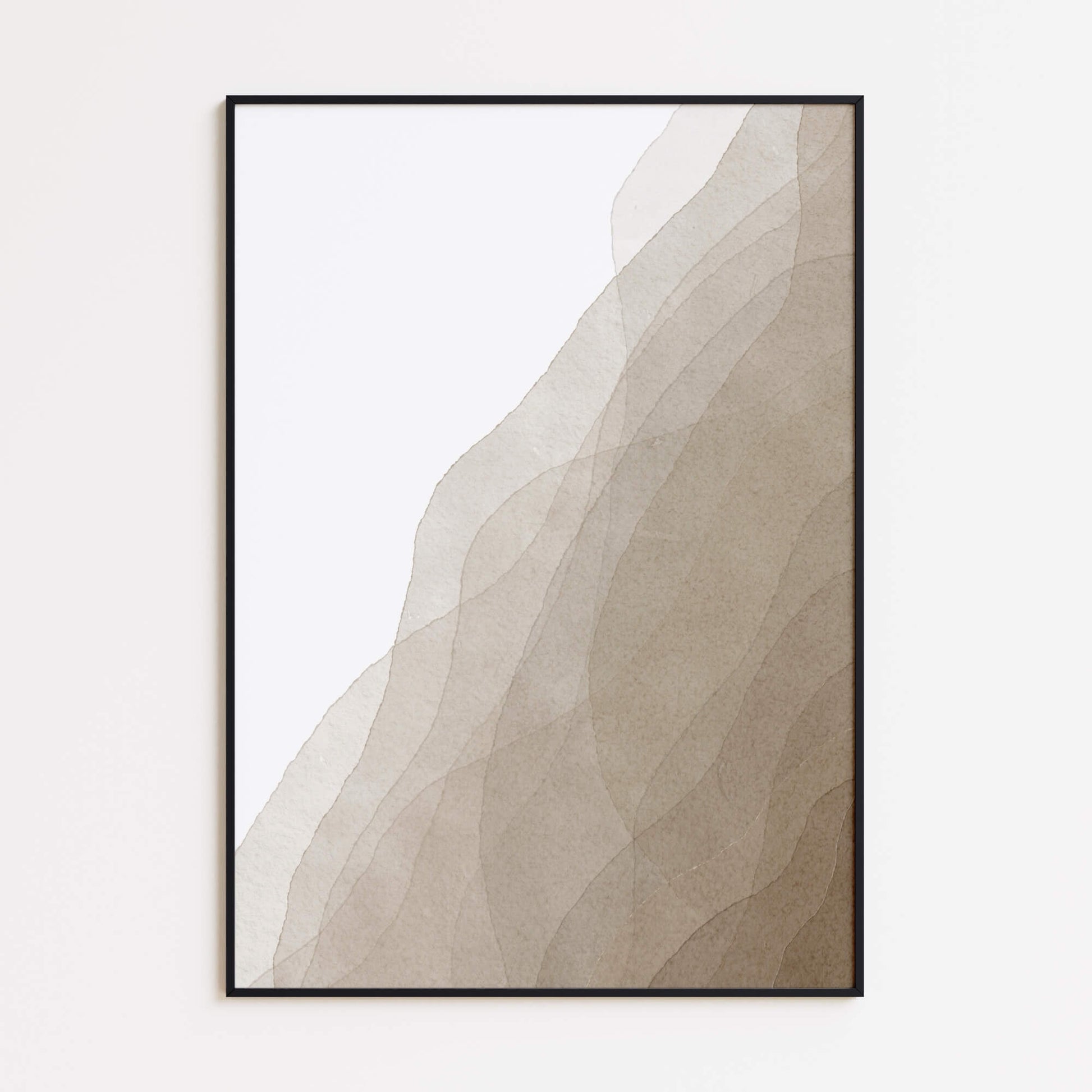 Dieses druckbare Poster zeigt abstrakte, fließende Linien in sanften Beigetönen und erzeugt eine ruhige und elegante Ästhetik. Ideal, um Ihrem Raum Wärme und einen natürlichen, erdigen Charme zu verleihen und eine gemütliche und einladende Atmosphäre zu schaffen. Kombinieren Sie es mit ergänzenden Drucken für einen harmonischen Look.