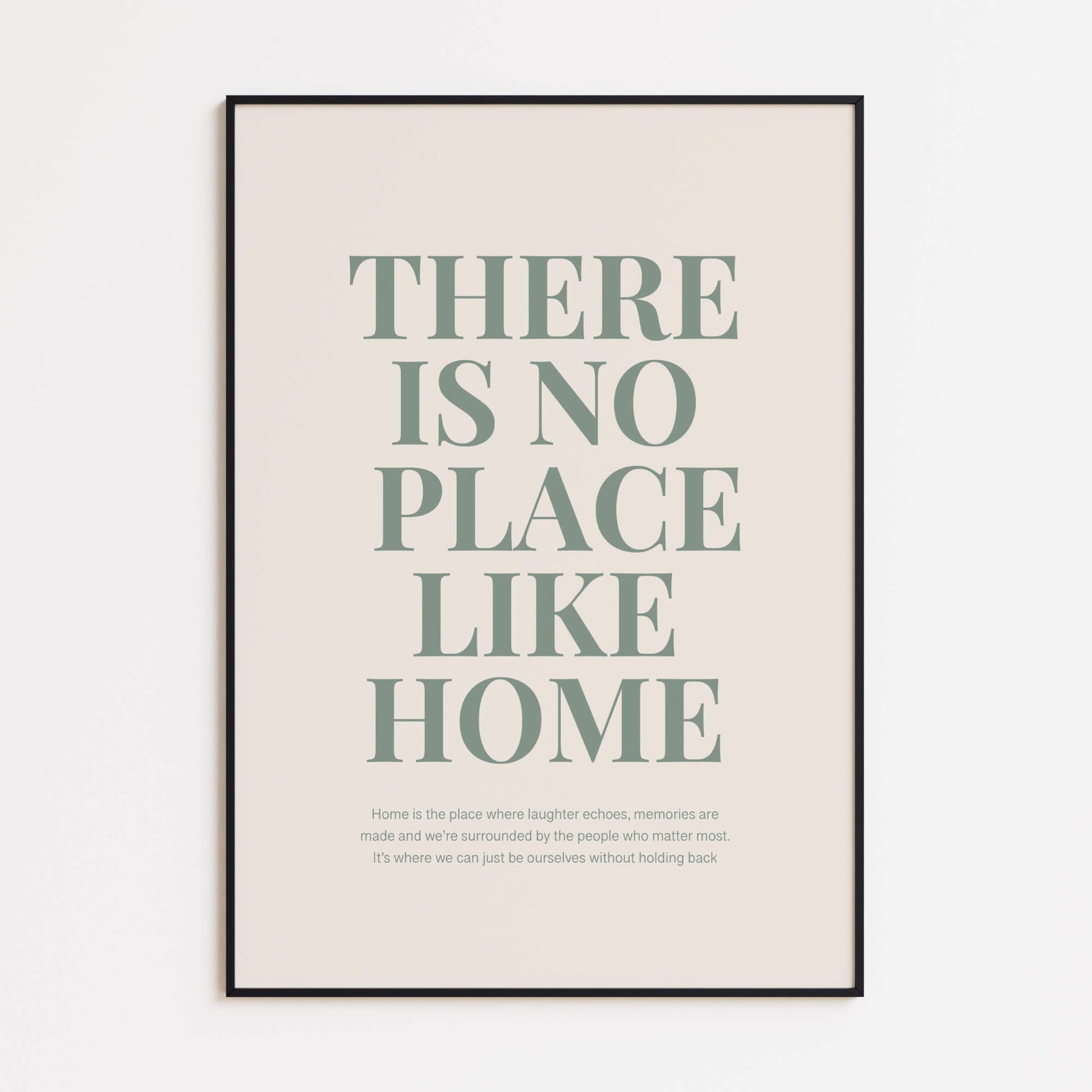 Bring warmth and comfort to your space with this minimalist typography poster. Featuring the heartfelt phrase "There Is No Place Like Home" in elegant neutral tones, this design celebrates the joy, love, and memories that make a house a home. Perfect for creating a cozy atmosphere in living rooms, bedrooms, or entryways. Pair it with other inspirational prints for a personalized gallery wall.